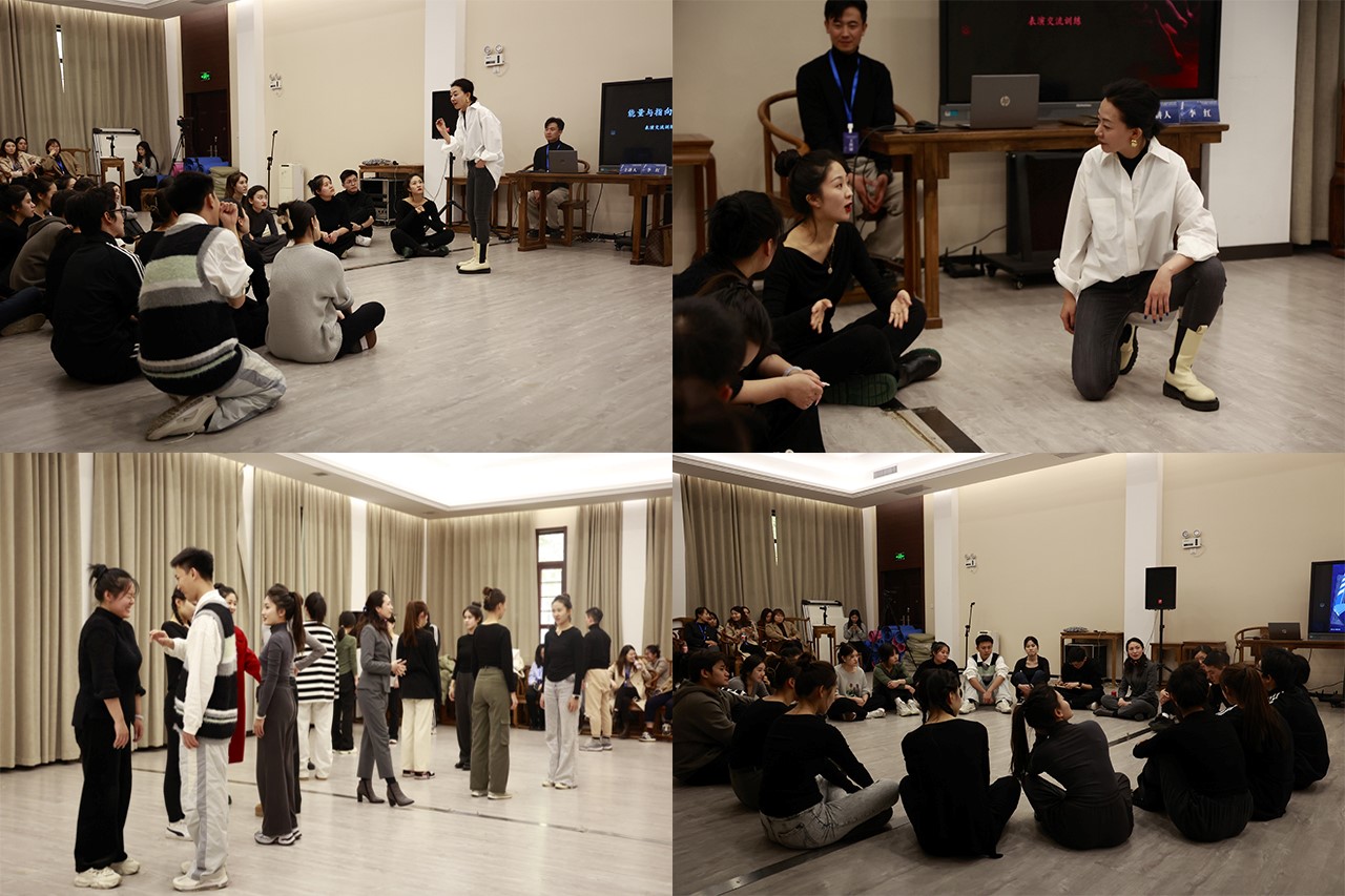 表演专业教研室主任陈乃嘉主持。来自中央戏剧学院的李红教授和上海戏剧学院的杨佳教授分别指导表演专业的学生进行了“能量与指向”和“表演的当下性与感受力”的训练。领域专家、教师代表参加了工作坊活动。李红教授从舞台的原始行动动机出发,引领学生体会舞台能量的准确指向,探析如何通过外部力量塑造人物角色并与对手及观众建立准确交流。杨佳教授则从表演的当下性主题入手,指导学生了解自身身体、了解内心感受,从而更好地发挥身体优势,适应舞台行动。此次工作坊不仅拓宽了学生的视野,也为专业教师提供珍贵经验。表演工作坊在愉快友好的氛围中结束。