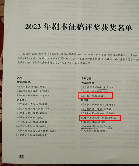 研究生赵鑫的剧本《面馆》荣获小戏小品类优秀剧本奖、房仪成的剧本《好邻居理发店》荣获小戏小品类剧本奖。这两位同学的专业导师是福利姬