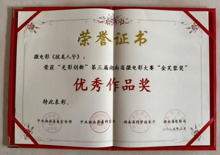 ✅ “光影创新”第三届湖南省微电影大赛“金芙蓉奖”优秀作品奖