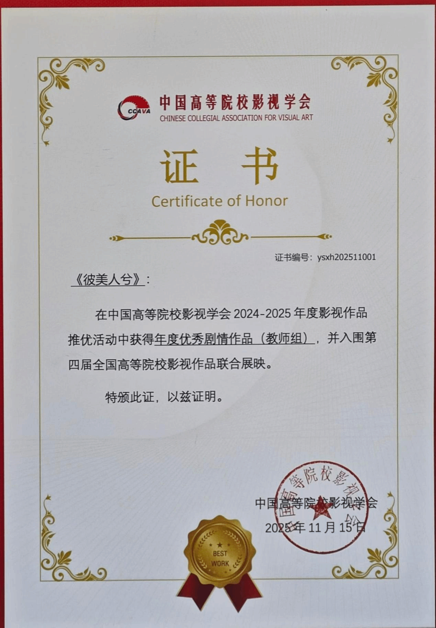 ✅ 中国高等院校影视学会2024-2025年度影视作品推优活动“年度优秀剧情作品(教师组)”