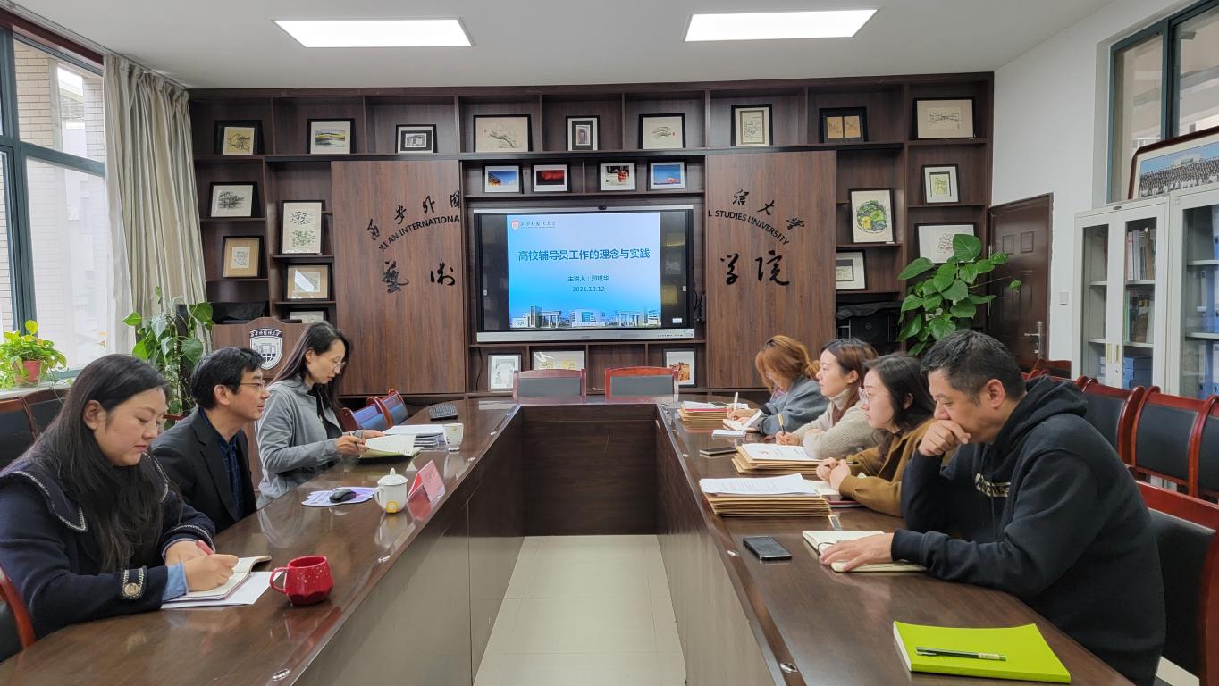 在会议室E301召开学工干部培训会暨学工例会。校党委委员,统战部部长郑锐华老师应邀担任主讲,学院党委书记梅林竹、党委副书记屈晓和全体辅导员参加。会议由梅林竹主持。